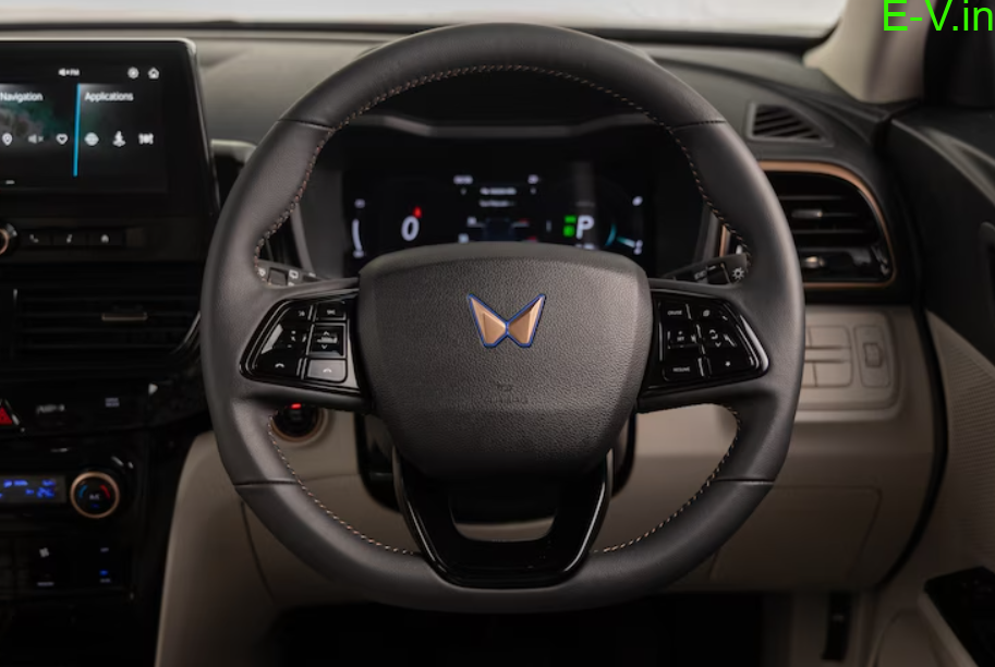 This was accompanied by a revision of the switchgear as well. Additionally, the XUV400 now has a new dual-tone black and beige theme, replacing the old all-black theme. In the same way as before, copper accents continue to be used. As part of the new design, the steering wheel features a flat bottom, leather stitching, and copper threads.