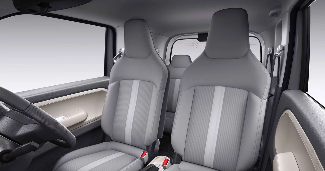 With the Comet, you don’t have to compromise on space efficiency. Based on the architecture of an electric skateboard, it has a long 2,010mm wheelbase and a box shape. There are two-tone finishes on the front fascia, a high-blunt nose, wraparound stripes under the windshield, and LED lighting elements inside the door mirrors.