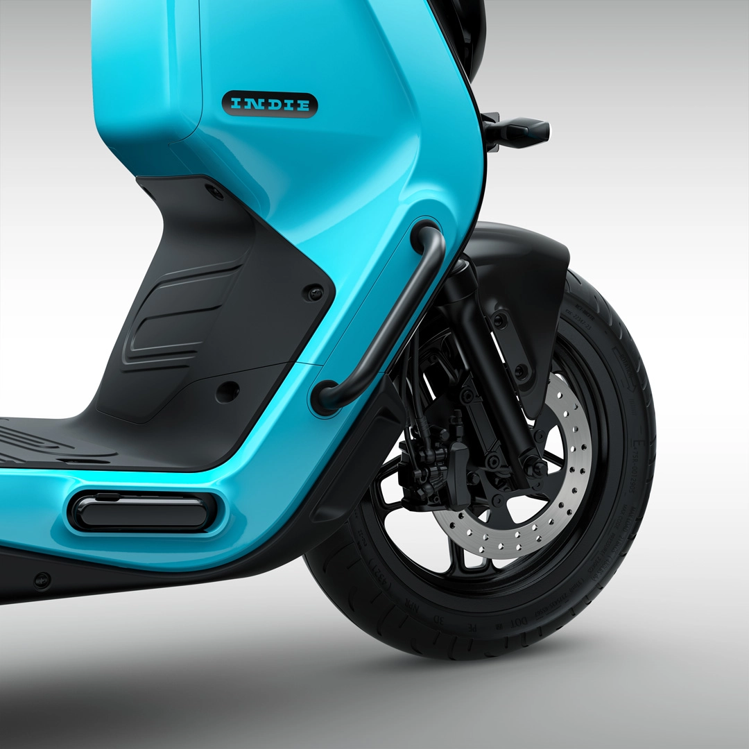 The Indie is equipped with a mid-mounted electric motor that sends power to the rear wheels via belt drive. The engine is rated for a maximum power output of 6.7kW/26Nm and the company claims a top speed of 90km/h as well as a practical range of around 120km in Eco mode, the lowest of the three capacity levels. Eco mode limits the top speed to 55 km/h, while Ride and Rush modes will allow you to reach speeds of 90 km/h, but with different effective accelerations. This scooter seems to promise similar performance to the Ather 450X, but with better range.