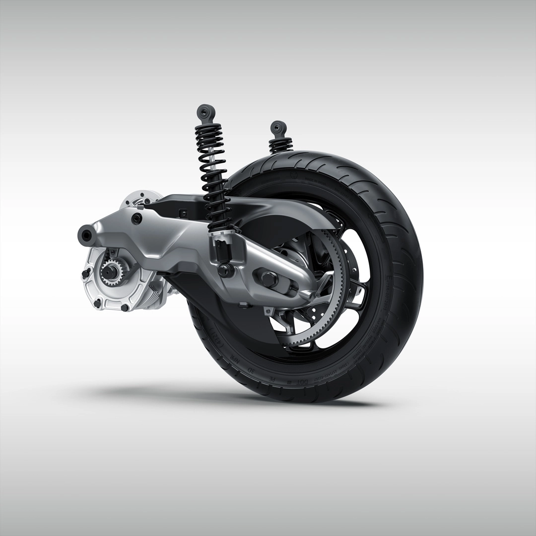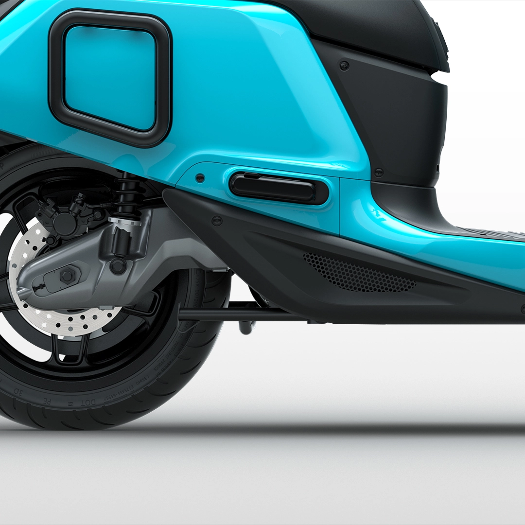 The Indie is based on a tubular steel frame and features 32mm telescopic forks up front as well as twin shock absorbers at the rear. There are disc brakes at both ends and a combined braking system, like all-electric scooters at this price point. River decided to use cast aluminum swingarms to give the scooter a premium look and feel. The company claims the weight will be around 135kg.