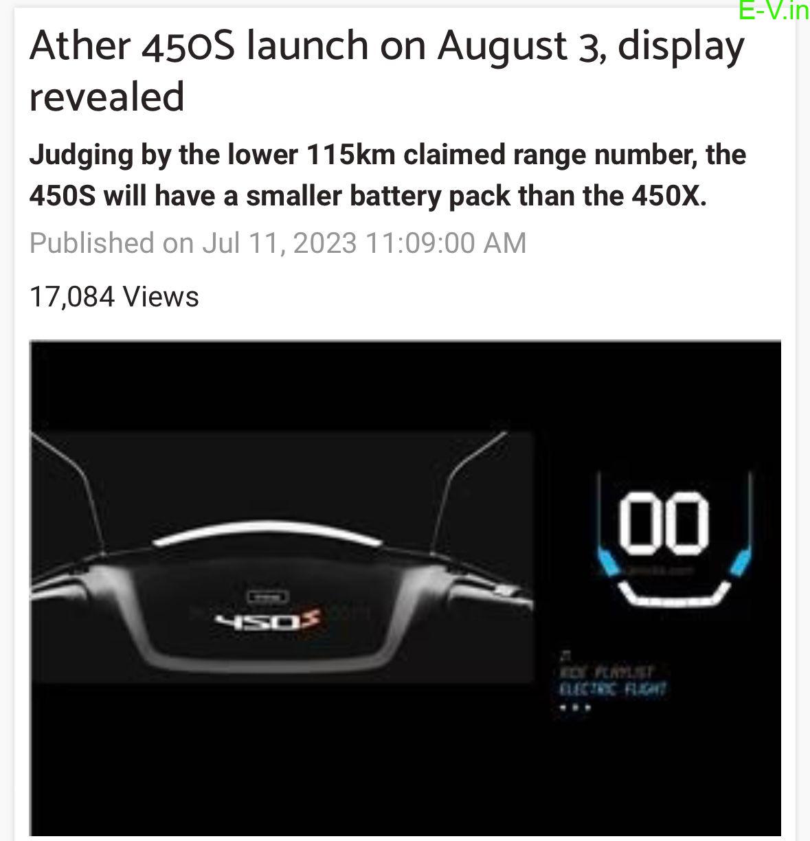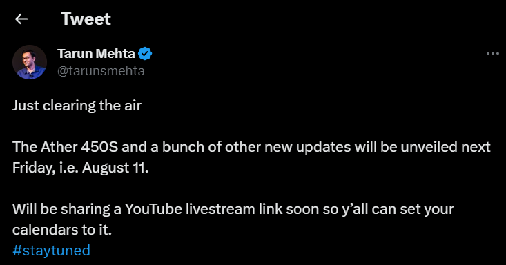 As one of the most anticipated events of the year is set to take place on August 11th, Tarun Mehta, the Chief Executive Officer and Co-founder of Ather Energy, will unveil the Ather 450S and provide other updates via a live YouTube stream. It was reported earlier that the upcoming model would be released on the 3rd of August for INR 1.3 lakhs. It is an affordable option compared to its predecessor, the 450X, which features a smaller battery unit that makes it more affordable than its predecessor.